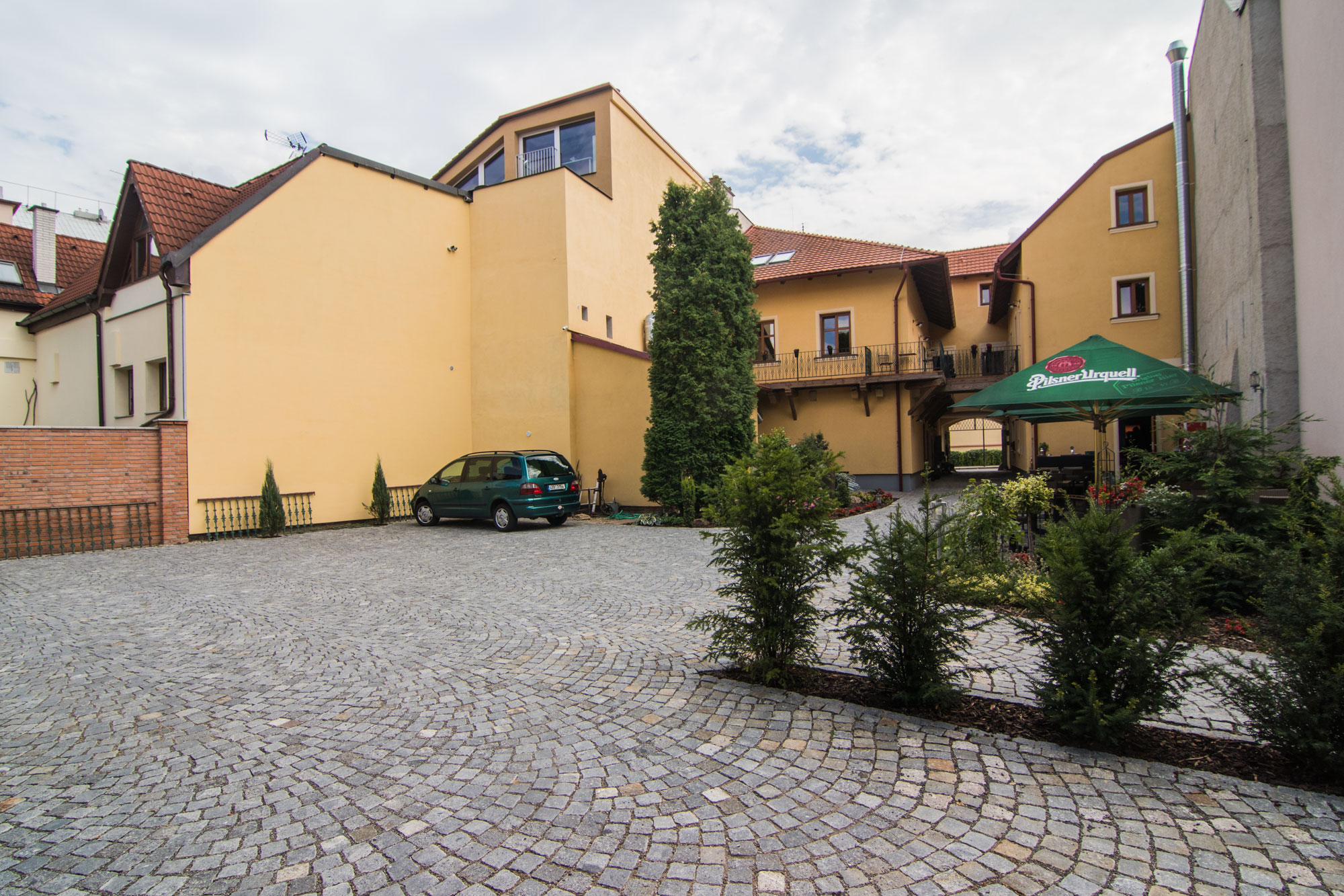 Parkování je možné v areálu pensionu zdarma. Vjezd pro hosty je přímo z hlavního náměstí.